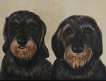 2019Portret van ruwharige teckels. In een baklijst met zilverkleurige rand.