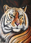 2019Portet van een tijger. Dit werk is ingelijst in een zwarte baklijst.