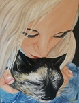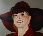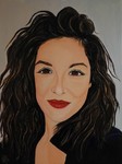 2017Portret van Nadia. Krullen zijn in 3D erop geschilderd. Ingelijst in een zwarte baklijst