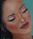 2017Portret van Rihanna. Ingelijst in een zwarte baklijst.